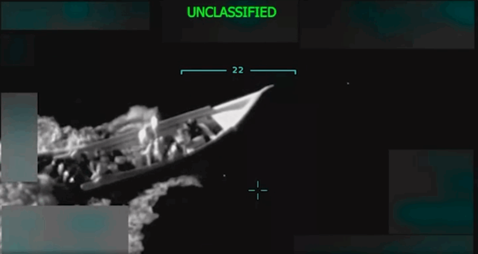 Contudo, o presidente divulgou um vídeo nas redes sociais que aparenta mostrar apenas uma embarcação em alta velocidade sendo atingida por um ataque aéreo.