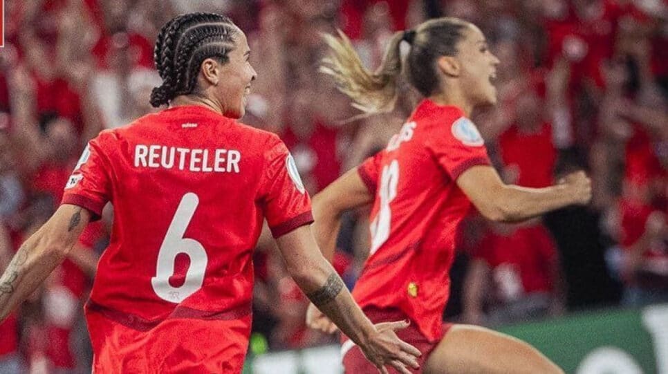 A seleção feminina da Suíça alcança, pela primeira vez, uma fase eliminatória em uma Eurocopa.