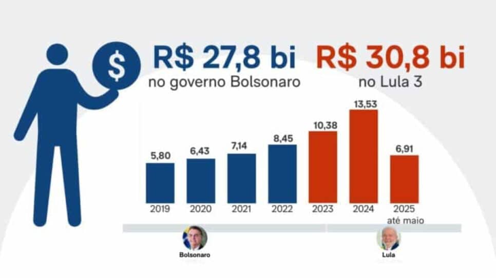 Esse valor já ultrapassa o total (R$ 27,8 bilhões) pago por meio de judicialização durante o mandato do ex-presidente Jair Bolsonaro (PL), entre 2019 e 2022. A estimativa foi elaborada pelo Poder360. Consulte a metodologia detalhada ao final da reportagem.