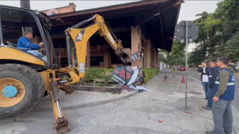 A Secretaria de Ordem Pública, em parceria com a Secretaria de Desenvolvimento Urbano e Licenciamento, deu início nesta segunda-feira (21) à demolição parcial de um restaurante construído irregularmente na Avenida Armando Lombardi, área nobre da Barra da Tijuca, Rio de Janeiro. O estabelecimento ocupava ilegalmente o afastamento frontal, violando os parâmetros urbanísticos locais, conforme informado pela prefeitura.
