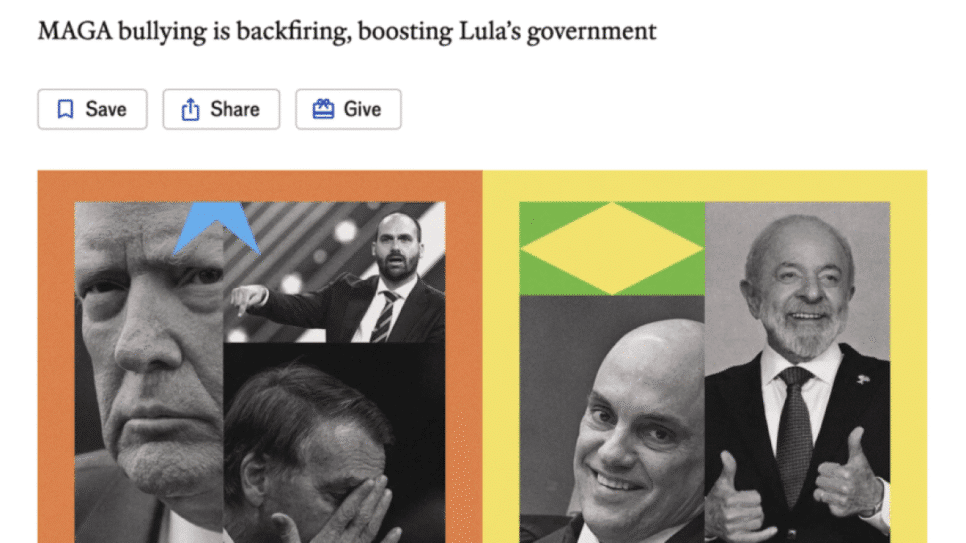 Se atrair a ira de Trump deveria fortalecer a direita brasileira antes das eleições gerais do próximo ano, o plano falhou. Brasileiros de diferentes origens estão apoiando Lula. Estátuas de Trump foram queimadas nas ruas. O índice de aprovação de Lula, que vinha caindo, se recuperou. Ele agora lidera o grupo de potenciais candidatos para a disputa do próximo ano.