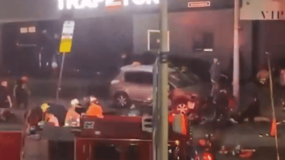 O porta-voz declarou que o automóvel inicialmente bateu em uma lanchonete de tacos localizada fora do local e, em seguida, seguiu em frente por um estacionamento com manobristas, colidindo com um grande número de indivíduos.
