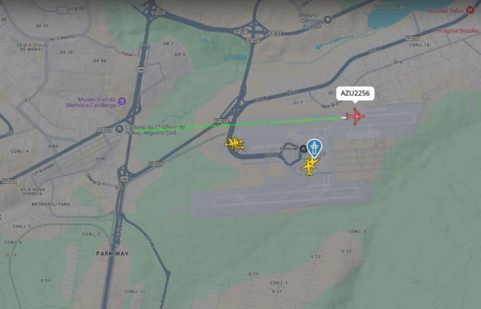 Um avião da Azul (voo AZU2256), decolado de São José do Rio Preto, com destino a São Paulo e, em seguida, Maceió, capital de Alagoas, precisou realizar uma aterrissagem de emergência no Aeroporto de Brasília.