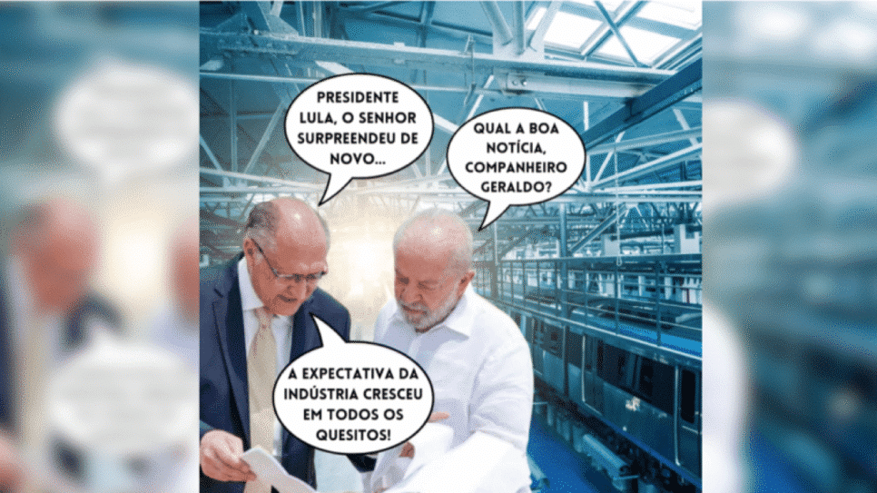 O vice-presidente e ministro do Desenvolvimento, Indústria, Comércio e Serviços, Geraldo Alckmin (PSB), publicou um meme em seu perfil no X, celebrando os resultados positivos do ICI (Índice de Confiança da Indústria), calculado pela FGV (Fundação Getulio Vargas). O indicador alcançou 98,9 pontos em maio, o valor mais alto registrado ao longo do ano.