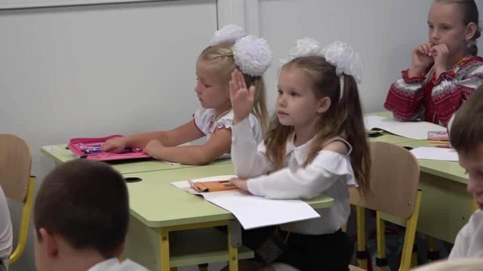 Maria Yampolska, de 6 anos, expressou alegria ao narrar seu primeiro dia de atividades artísticas e recreativas na sala de aula. Ao ser perguntada sobre a escola em relação ao jardim de infância, respondeu sinceramente: “Eu nunca estive presente devido à guerra.”