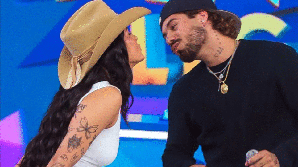 Durante a gravação do programa Domingo Legal, do SBT, o público foi pego de surpresa com uma cena inusitada entre Ana Castela e Zé Felipe. Os cantores deram o primeiro beijo no palco, um momento que rapidamente se espalhou pelas redes sociais.