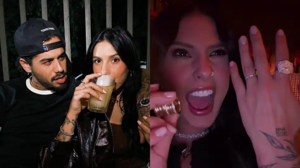 A cantora Ana Castela, de 21 anos, revelou em suas redes sociais, nesta quinta-feira (13), a diferença de tamanho entre sua aliança de namoro com o cantor Zé Felipe, de 27 anos, e a aliança de casamento de seus amigos. Em um vídeo, ela brincou: “Olha o tamanhozinho da minha, o que é isso, é de me mostrar?”.