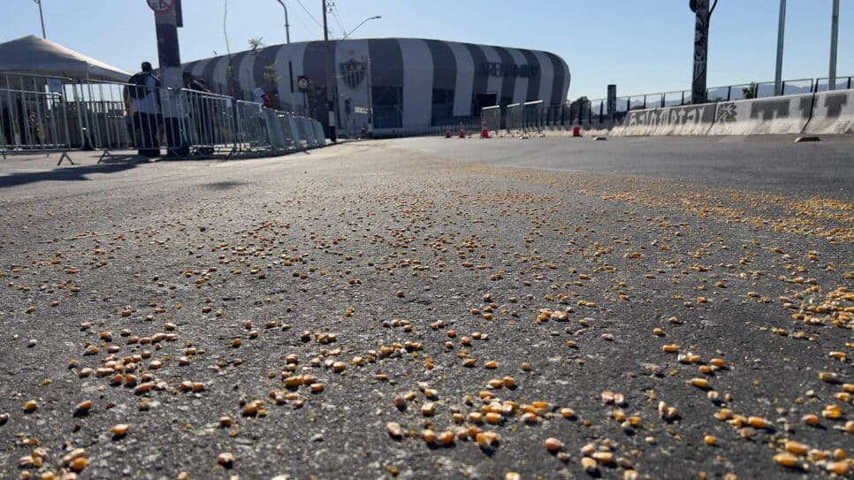 A véspera de quarta-feira (27) iniciou-se com um elemento adicional no cenário do confronto entre Atlético-MG e Cruzeiro. Antes do início da partida de ida das oitavas de final da Copa do Brasil, vias próximas à Arena MRV foram encontradas com milho distribuído em diversos pontos.