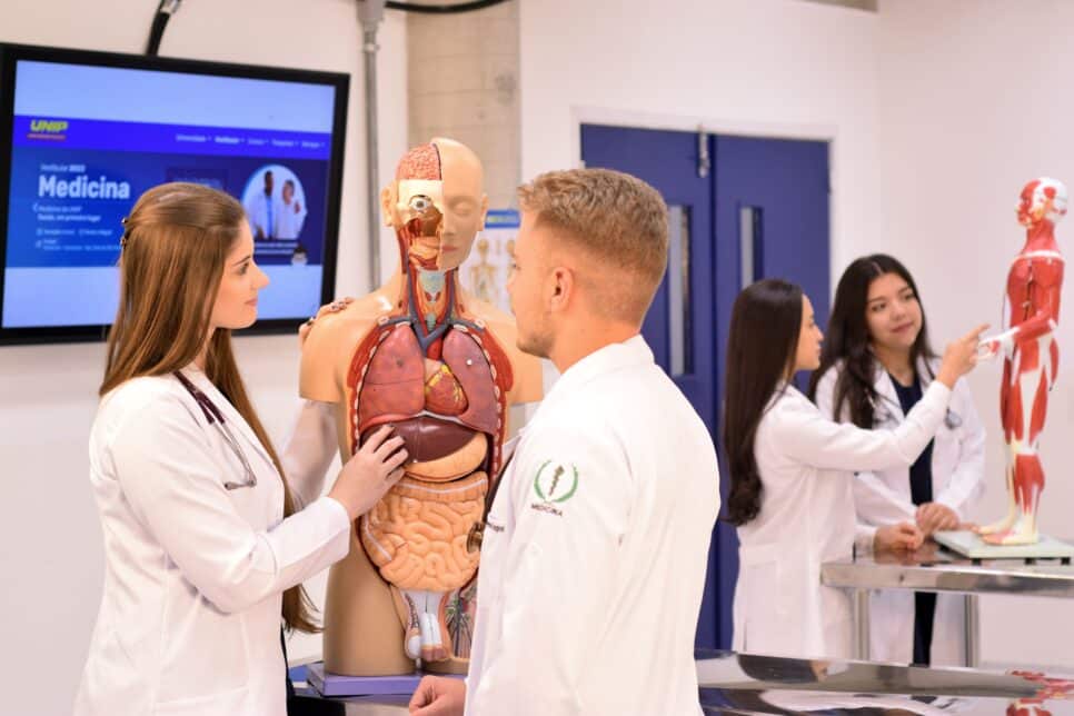 O curso de Medicina na Unip possui duração de seis anos, com aulas presenciais e regime de tempo integral. A mensalidade é de R$ 10.043,02.