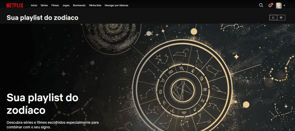 A Netflix disponibilizou recentemente a Playlist do Zodíaco, uma seleção de filmes e séries organizada por signo. A ideia é proporcionar comodidade para aqueles que têm dificuldade em decidir o que assistir.