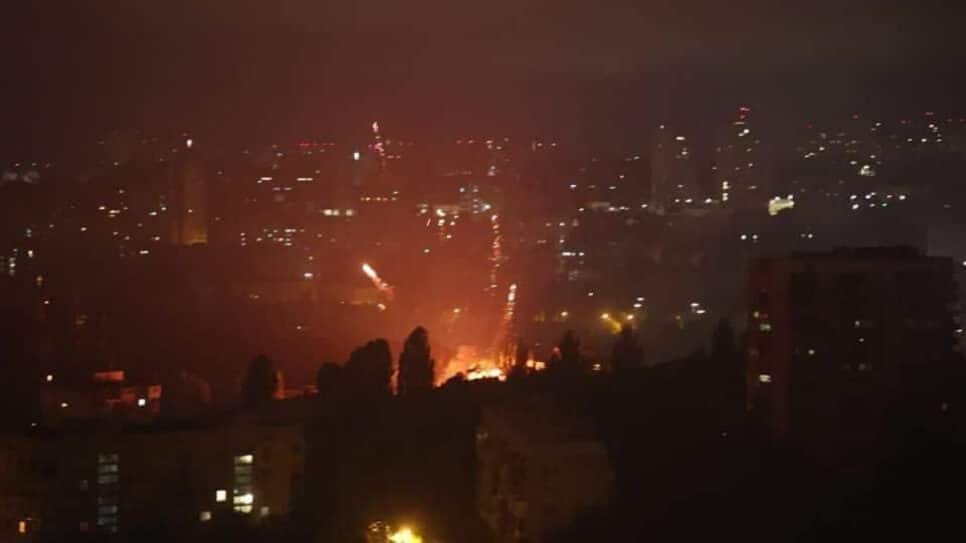 Explosões sacudiram Kiev por horas e incêndios iluminaram o céu noturno. Escolas e hospitais estavam entre os edifícios atingidos em 27 locais da cidade, de acordo com as autoridades.