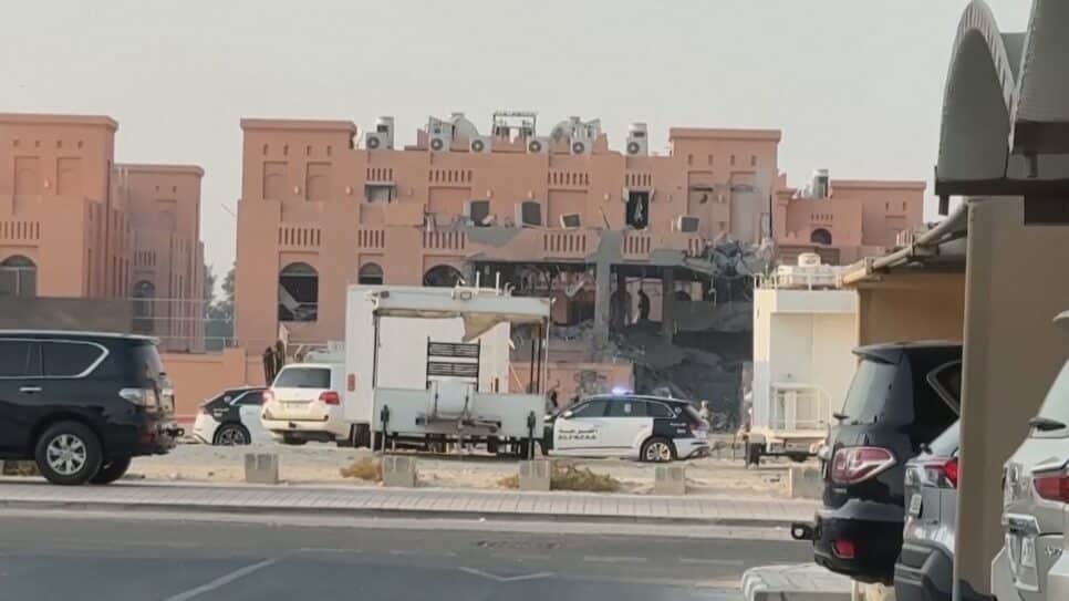 Um edifício sofreu danos após um ataque israelense contra Doha, a capital do Catar, na terça-feira (9).