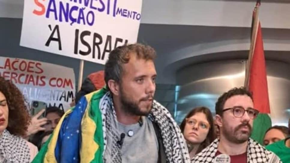 O ativista brasileiro Thiago Ávila, de 38 anos, chegou nesta 6ª feira (13.jun.2025) ao Aeroporto Internacional de Guarulhos, em São Paulo, dias após ter sido detido por participar do que seu grupo definiu como uma “missão humanitária” que buscava romper o bloqueio de Israel à Faixa de Gaza.