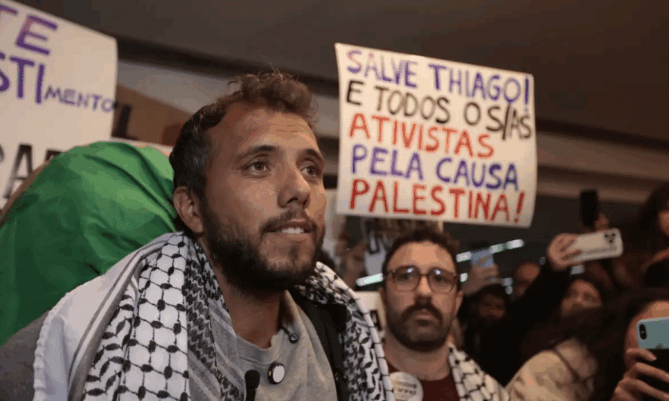 “Tudo o que desejávamos era não sermos mortos naquele instante. Fomos mantidos por mais de 20 horas sequestrados em nosso próprio navio, que estava fortemente armado”, declarou. A embarcação, interceptada em 9 de junho, partiu da Itália com o objetivo de contornar um bloqueio imposto por Israel ao território palestino, que há mais de três meses impõe fome a quase 2 milhões de pessoas. Thiago chegou ao Brasil na manhã da última sexta-feira (13) e foi recebido por familiares e apoiadores no Aeroporto Internacional de São Paulo, após sua prisão em Israel.