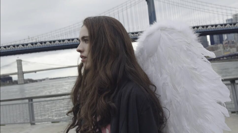 Em um trecho de “In The Sun She Lies”, Qualley busca Talia Ryder, colega de elenco. A atriz apresenta um estilo mais melancólico na cena, que também inclui um registro dela caminhando pelas ruas de Nova York com uma asa de anjo.