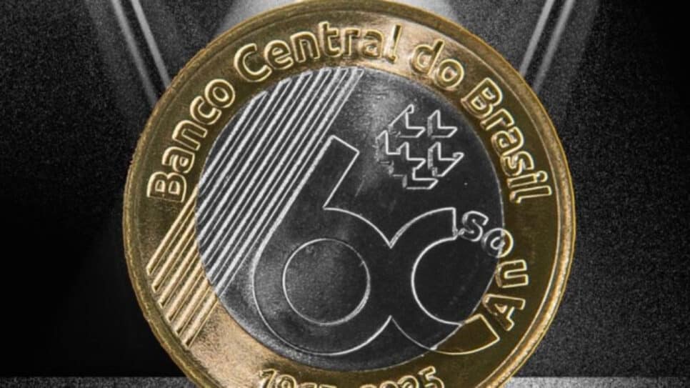 O Banco Central lançou, nesta sexta-feira (25.jul.2025), em seu perfil no Instagram, a moeda comemorativa R$ 1 em homenagem aos 60 anos da autoridade monetária, comemorados em 2025. A peça entra em circulação com uma tiragem de 23.168.000 unidades, que serão distribuídas à população através da rede bancária.