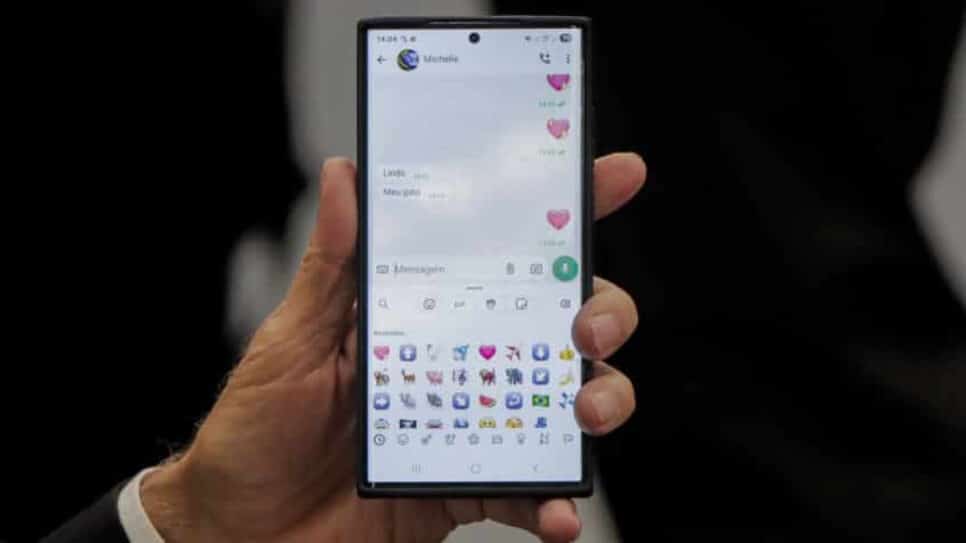 Bolsonaro exibiu a tela da conversa no WhatsApp com Michelle para os fotógrafos. É possível observar com clareza quais os emojis utilizados pelo ex-presidente, pois ao selecionar a opção para enviar um emoji, o aplicativo mostra aqueles que foram mais utilizados recentemente.
