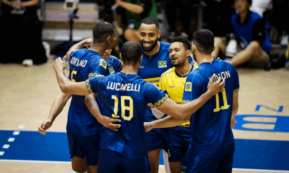 Com vaga assegurada na fase decisiva da Liga das Nações de vôlei, a seleção brasileira masculina derrotou a Turquia por 3 a 1 (25/22, 26/24, 22/25 e 25/22) neste sábado, em Chiba, no Japão. Apesar da movimentação no elenco nesta partida, o time de Bernardinho alcançou a 10ª vitória e mantém a liderança na competição. Darlan Souza foi o principal pontuador do Brasil, com 28 pontos na partida.