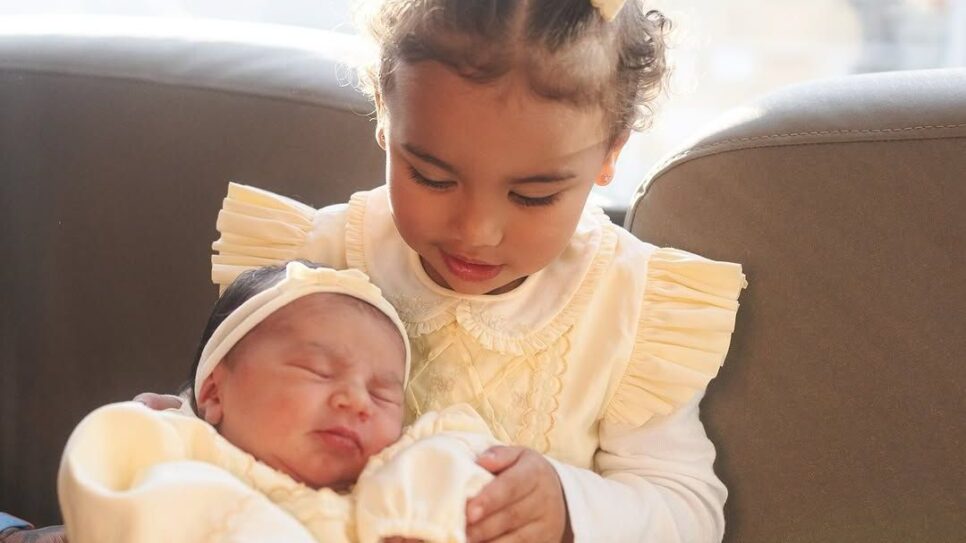 Bruna Biancardi, 31, compartilhou em suas redes sociais no domingo (6) o primeiro encontro de sua filha, Mavie, 1, com Neymar Jr, 33, e também revelou a chegada de Mel, segunda herdeira do casal, que nasceu na sexta-feira (5).