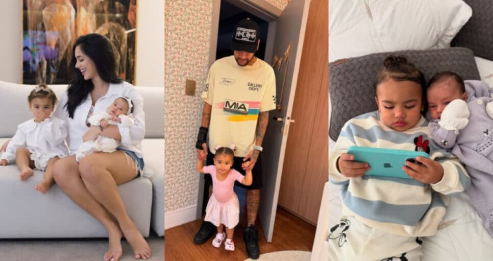 “Últimos dias”, escreveu ela. Em um dos registros, Biancardi também mostrou o filho mais velho de Neymar, Davi Lucca, 13, com Carol Dantas, segurando a irmã Mavie nos ombros.