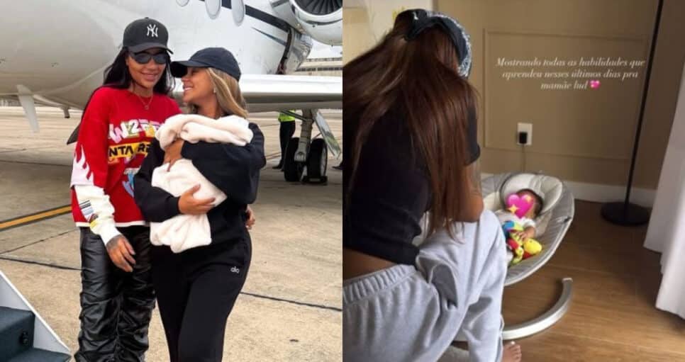 A bailarina Brunna Gonçalves, 33 anos, publicou recentemente uma nova imagem da cantora Ludmilla, 30 anos, e sua filha Zuri, de três meses.