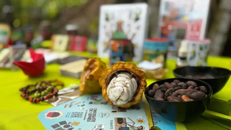 Após a fermentação, o cacau é torrado e sua casca removida, resultando nos “nibs de cacau”. Em seguida, ocorre a trituração, que aquece e libera manteiga, umedecendo o chocolate, que pode ser moldado em embalagens feitas de folhas secas. Os produtos são vendidos na comunidade e para turistas que visitam a região.