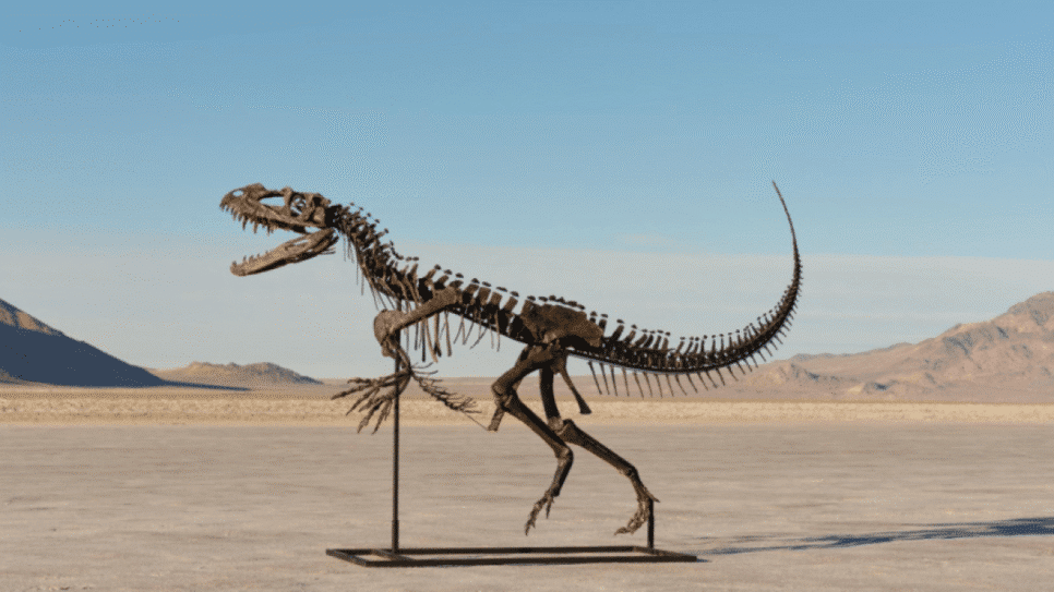 O ceratossauro, um predador que viveu há cerca de 150 milhões de anos, atingia aproximadamente 3 metros de comprimento. O espécime se distingue pelo crânio completo, composto por 57 ossos, descritos pelo dono como “finos como papel e extremamente delicados”.