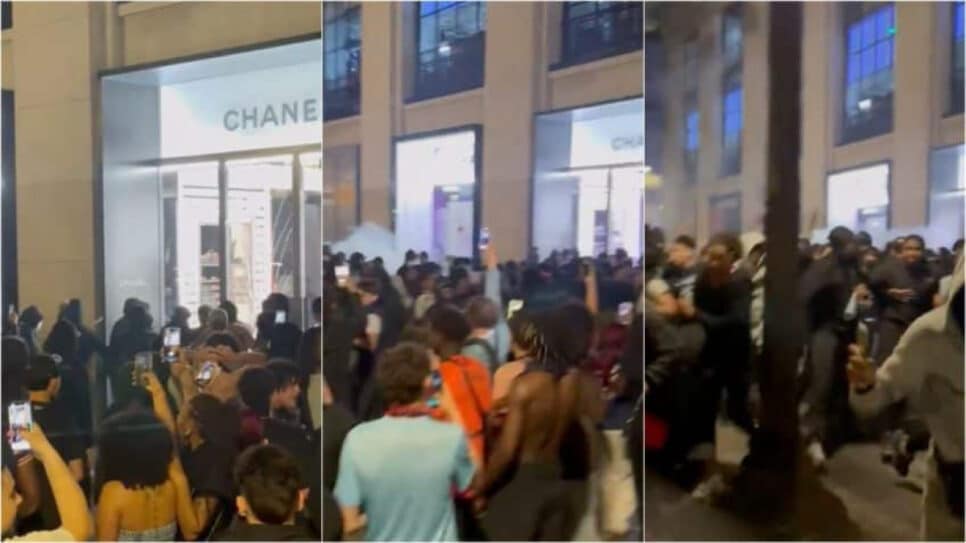 Um vídeo exibe indivíduos arrombando a vitrine de uma loja Chanel. Diante da chegada da polícia, eles fogem.