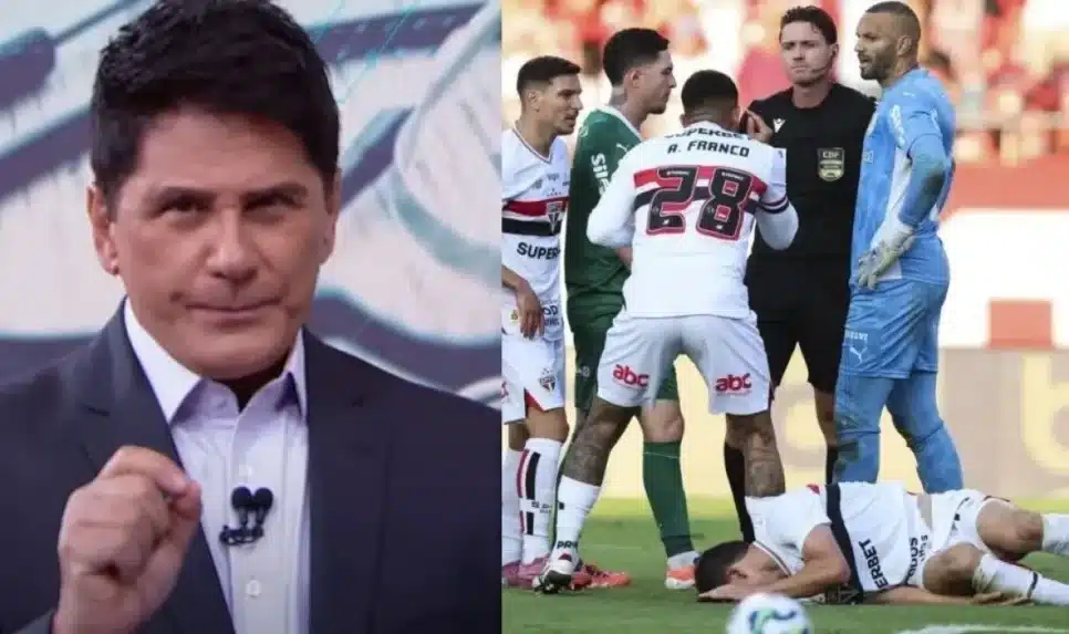 O apresentador do Jornal do SBT, Cesar Filho, expressou sua forte insatisfação com a atuação da arbitragem no clássico entre São Paulo e Palmeiras, ocorrido no último domingo (5). A polêmica partida, conhecida como “Choque-Rei”, gerou críticas severas do jornalista, que questionou a credibilidade do Campeonato Brasileiro.