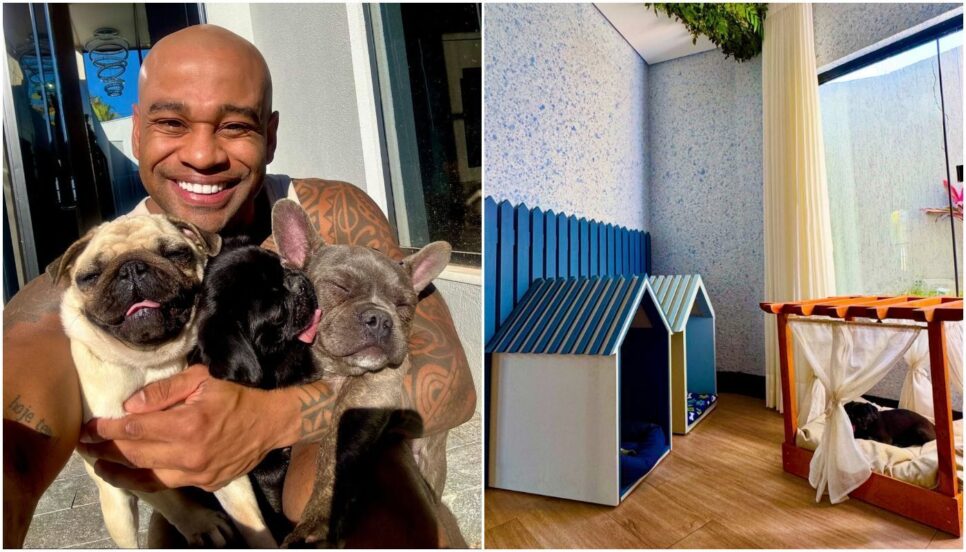 O ex-BBB Cêzar Black exibiu, nas redes sociais na sexta-feira (4), a decoração de sua nova residência, que inclui um quarto dedicado exclusivamente aos seus cães.
