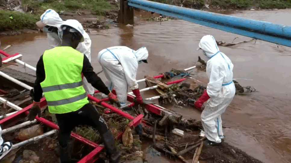 A voluntária Loua Nicodem afirmou: “Nosso país está sofrendo com chuvas torrenciais… Nosso objetivo é ajudar as comunidades e a administração a limpar essas infraestruturas, mas também ajudar a encontrar corpos”.