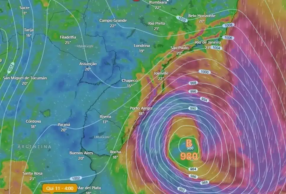Um sistema de baixa pressão começa a se desenvolver neste domingo (7) próximo ao litoral do Rio Grande do Sul, com potencial para originar um ciclone extratropical nos próximos dias. De acordo com a agência Nottus, o fenômeno já gera áreas de instabilidade entre o Paraguai e o Brasil, e deve ganhar força ao se deslocar em direção ao oceano.