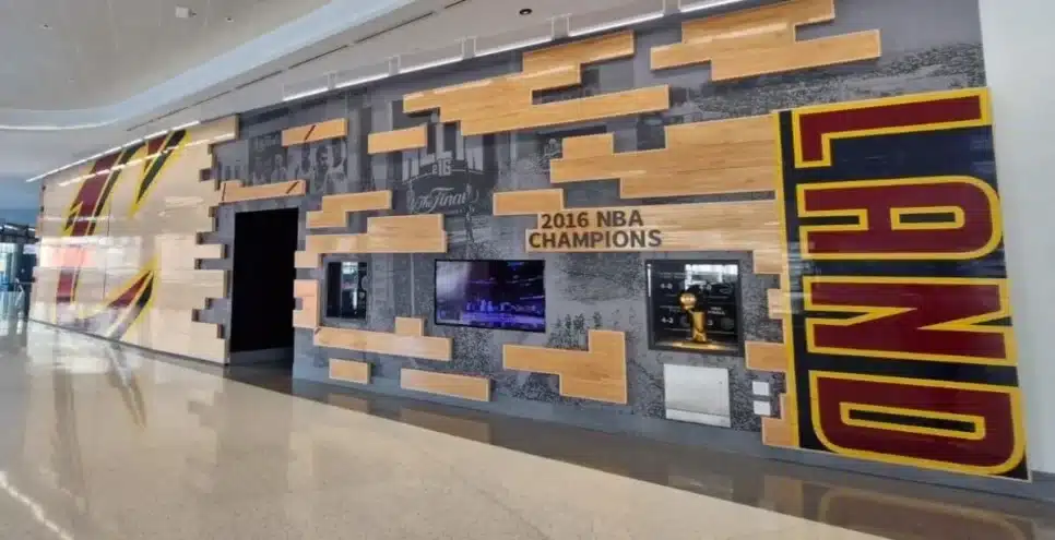 Para homenagear essa trajetória, a Rocket Arena, casa dos Cavs, reflete o peso dessa conquista. O piso original da Quicken Loans Arena das Finais de 2016 foi transformado em uma obra de arte, simbolizando a vitória. Camisas históricas, painéis explicativos e o troféu conquistado em 19 de junho de 2016 estão expostos, celebrando a memória do título.