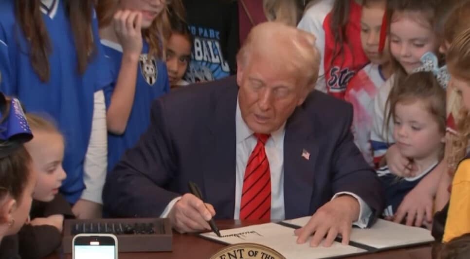 Trump sancionou em fevereiro a ordem executiva “Manter Homens Fora dos Esportes Femininos”, visando impedir que mulheres transgênero participem em categorias femininas.