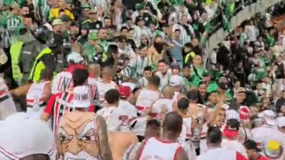 O jogo empatado entre Atlético Nacional e São Paulo por 0 a 0 na terça-feira (13) resultou em confusão nas arquibancadas. Torcedores das duas equipes tentaram ultrapassar o cordão policial que dividia as torcidas após o término da partida no Estádio Atanasio Girardot, em Medellín, na Colômbia.