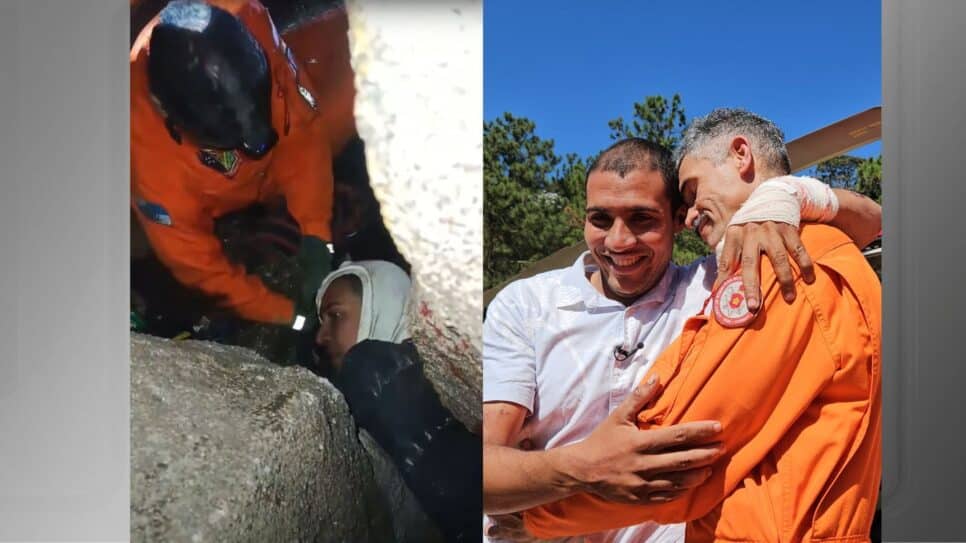 O turista Gabriel Pessanha foi resgatado pelo Corpo de Bombebros Militar, na última quarta-feira (16), na Pedra do Sino, em Teresópolis, na serra fluminense. O indivíduo havia se perdido em uma trilha e caiu em uma fenda entre as pedras da montanha.