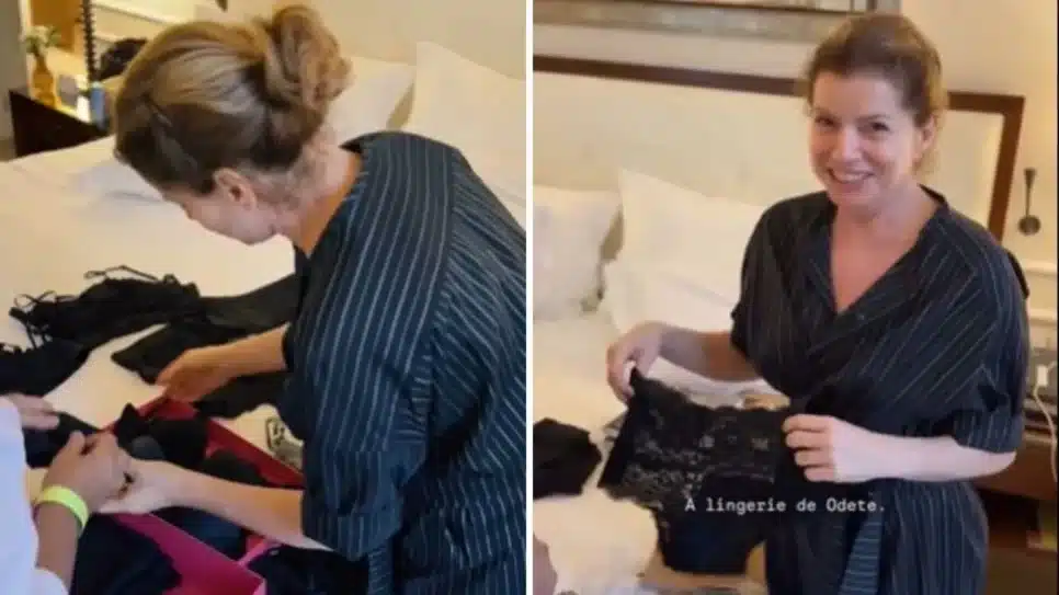 Em suas redes sociais, a atriz compartilhou momentos dos últimos bastidores das filmagens e surpreendeu ao revelar um objeto que guardará como lembrança: uma peça de lingerie pertencente à poderosa empresária. A revelação gerou comentários e interação entre os fãs.