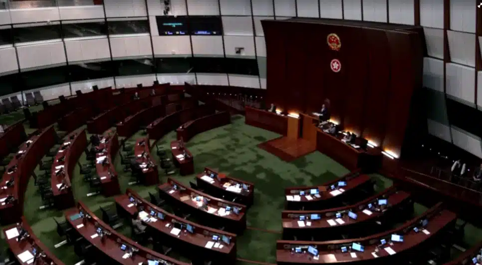 A primeira vez que a legislatura de Hong Kong, após ser renovada para abranger apenas membros pró-Pequim em 2021, rejeitou um projeto de lei, ocorreu com 71 votos contrários e 14 votos favoráveis.