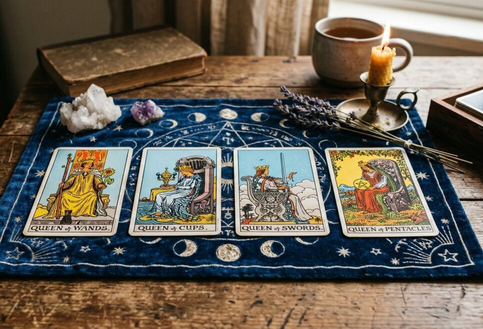 As quatro Rainhas do Tarot simbolizam potências que fazem parte de todas nós. Conhecer essas facetas é uma maneira de enxergar-se com mais clareza e menos cobrança. É perceber que uma mesma pessoa pode manifestar a intensidade da ação em um momento e a calma da reflexão em outro, integrando diferentes versões de si mesma.