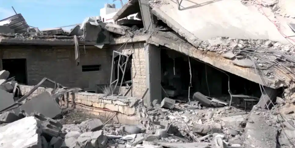 Destruição em Saksakiyeh após ataque israelense