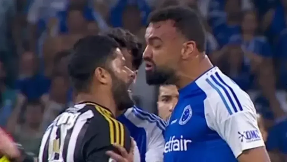 Nos 25 minutos de partida, com o placar em 1 a 0 para o Cruzeiro, Hulk teve uma discussão com Fabrício Bruno. O zagueiro estava no chão, e o atacante atleticano se aproximou do jogador adversário.