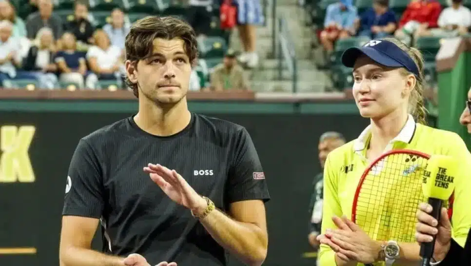 A tenista Elena Rybakina, atualmente na terceira posição do ranking WTA, enfrentou um momento constrangedor após o torneio de exibição Eisenhower Cup, realizado em Indian Wells, antes do Masters 1000. Durante a cerimônia de premiação, onde recebeu um cheque de 200 mil dólares (R$ 1 milhão) e troféus, Rybakina e seu parceiro nas duplas, o americano Taylor Fritz, posaram para fotos com os patrocinadores.