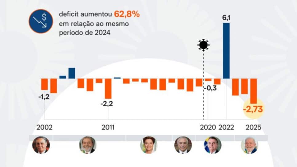 As empresas estatais federais apresentaram um déficit histórico de R$ 2,73 bilhões em 2025. Trata-se do maior valor desde 2002 (23 anos). Números do BC (Banco Central) indicam que o resultado negativo cresceu 62,8% em relação ao mesmo período do ano anterior.