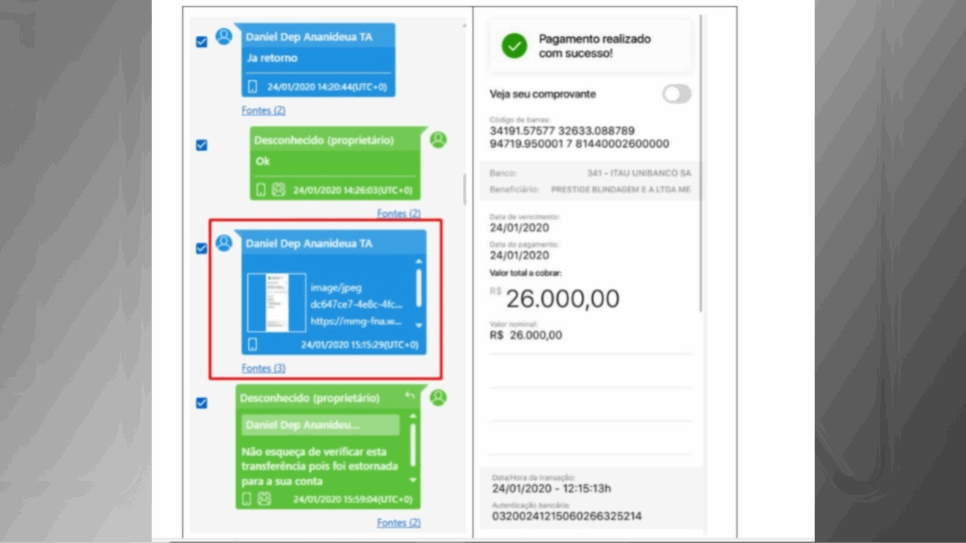 Em mais de 200 páginas, o Ministério Público detalha mensagens em aplicativos que descrevem as condutas dos investigados em relação às transações financeiras antes, durante e após a aquisição da propriedade rural.