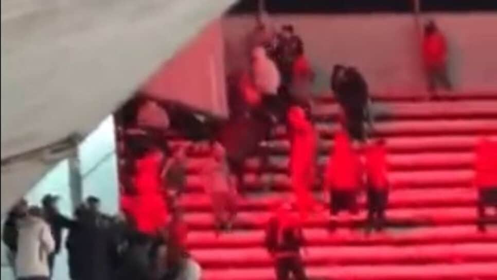 Os torcedores do Independiente contornaram o cerco policial e desencadearam a confusão. Diversos chilenos ficaram presos e agredidos. Um indivíduo saltou da gradinha para escapar da violência.