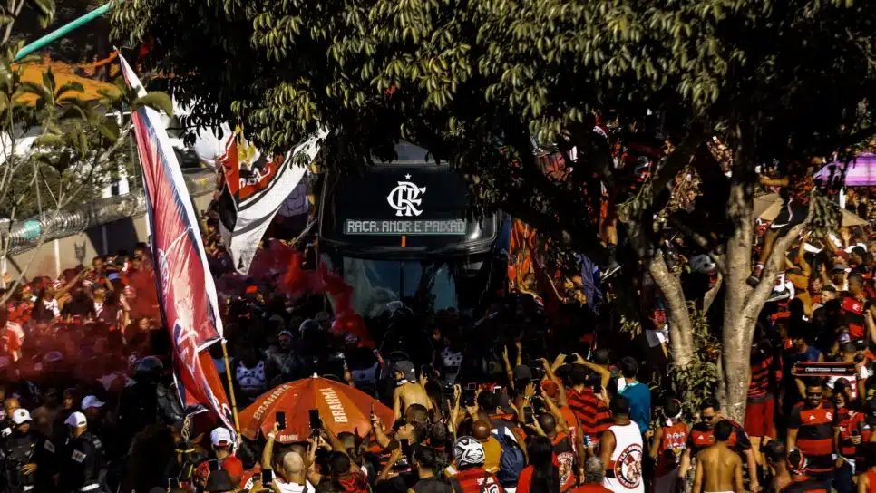 A torcida do Flamengo organizou uma grande celebração para acompanhar a equipe até o aeroporto do Galeão, no Rio de Janeiro, em direção à final da Libertadores, marcada para o próximo sábado (29) em Lima. No entanto, a festa ultrapassou os limites, com alguns torcedores invadindo o ônibus que transportava os jogadores.