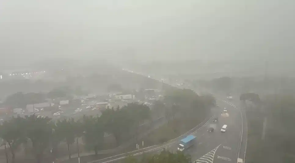 A chuva se origina do interior e é causada por uma área de baixa pressão. Sua intensidade varia entre moderada e forte, com expectativa de se espalhar por toda a cidade.