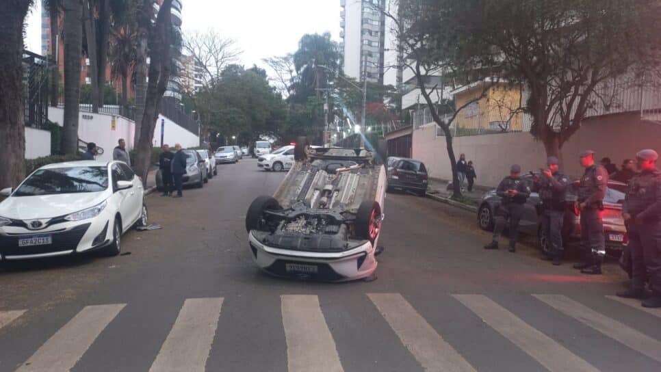Conforme informações da PM, o capotamento ocorreu após um dos veículos atingir outro automóvel, modelo HB20, que se encontrava estacionado na via pública.