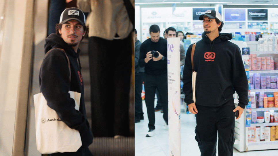 Com uma leve chuva e lojas abertas, o atleta aproveitou para realizar pequenas compras pessoais, em um momento de retorno à rotina, longe das competições e treinos. Enquanto abastecia itens na farmácia, Medina chamou a atenção pela sua postura acessível.