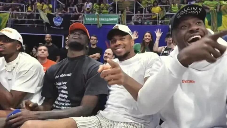 O jogador do Milwaukee Bucks, Giannis Antetokounmpo, observou de perto o desempenho da Seleção Brasileira a partir das arquibancadas do ginásio.